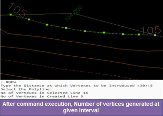 شما فقط یک فاصله مشخص می‌کنید. سپس این فرمان، نقاطی رو روی پلی‌لاین اصلی پیدا می‌کنه که مضربی از فاصله تعیین شده توسط شما هستند و یک پلی‌لاین جدید و سبک‌وزن با رئوس بسیار کمتر برای شما ایجاد می‌کنه.