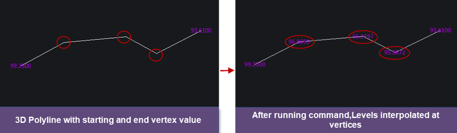 برنامه به صورت هوشمند، متنهای ارتفاع را در تمامی رأسهای پلیلاین ایجاد میکند.