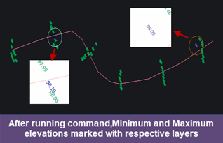 این برنامه ، مانند یک دستیار هوشمند عمل میکند. کافیست یک Polyline به عنوان مرز انتخاب کنید و این افزونه جادویی، تمام متون عددی درون آن مرز را شناسایی کرده، سپس کوچکترینMinimum)) و بزرگترینMaximum)) عدد را پیدا کرده و برای شما به شکلی مشخص، علامتگذاریMark)) میکند!
